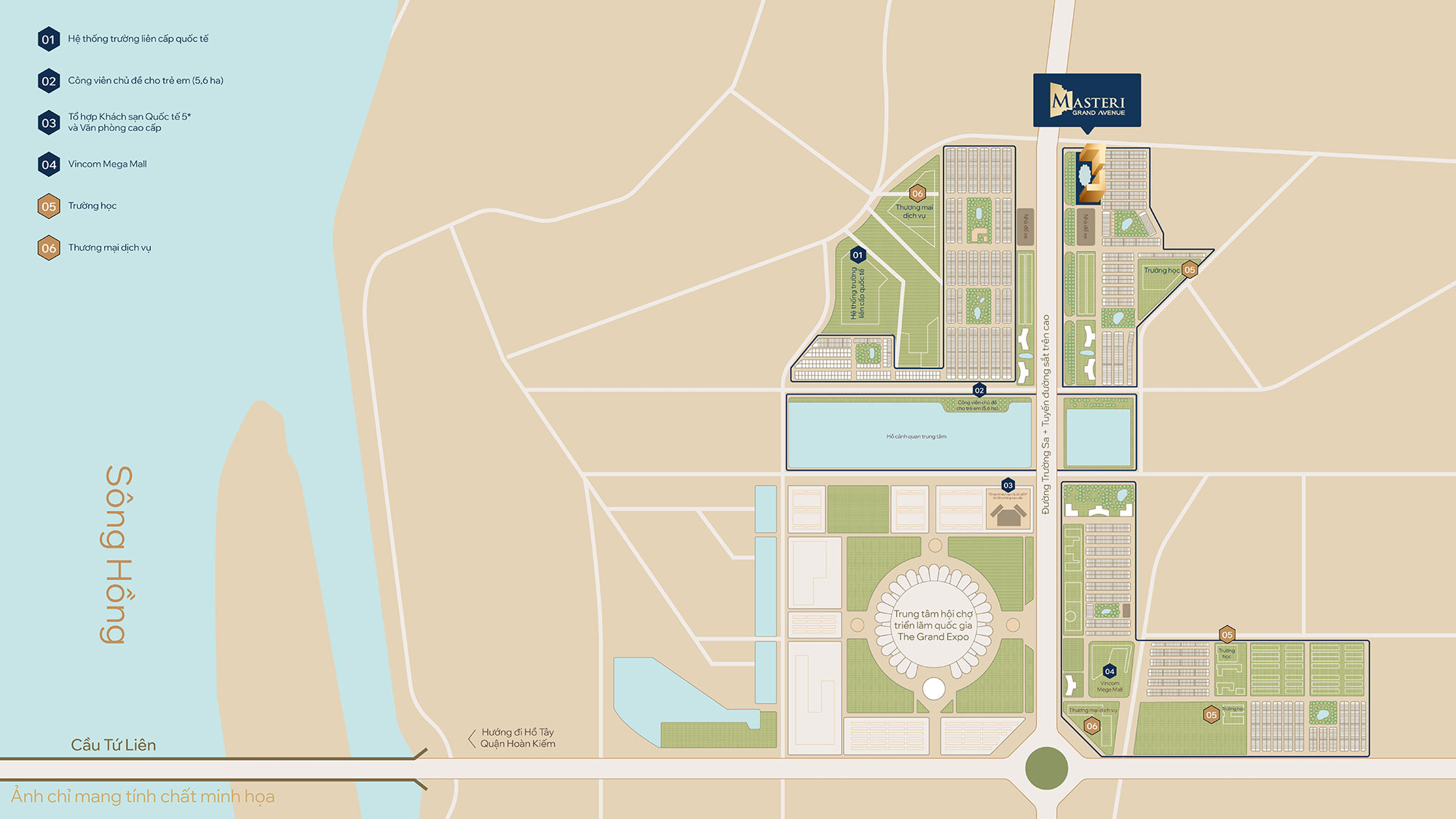 Bên cạnh đó, Masteri Grand Avenue còn được thừa hưởng trọn vẹn hệ sinh thái đẳng cấp của “Thành phố thương mại toàn cầu” Vinhomes Global Gate, bao gồm: trung tâm hội chợ triển lãm quốc gia, khách sạn JW Marriott, trường học Vinschool, Vin Star, trung tâm thương mại Vincom Mega Mall, chuỗi nhà hàng/cửa hàng sang trọng tại 4147 căn biệt thự liền kề Vinhomes Cổ Loa và đặc biệt là 40 ha cây xanh & mặt nước đến từ hồ Thiên Nga & gần 20 công viên chủ đề lớn nhỏ, hứa hẹn sẽ mang đến cho những chủ nhân thượng lưu nơi đây một cuộc sống thời thượng những không kém phần “resort” đẳng cấp.