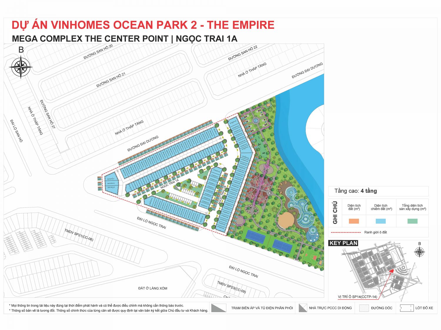 The Center Point là phân khu Mega Complex đầu tiên được mở bán tại Vinhomes Ocean Park 2 Hưng Yên. The Center Point được phát triển với 218 căn, chia thành 3 tiểu khu: Chà Là 15A, Ngọc Trai 1A, Đại Dương 1. Cả 3 tiểu khu nằm kế bên nhau ôm trọn nút giao giữa 3 cung đường đại lộ San Hô 51 m, đại lộ Ngọc Trai 51 m và đường Đại Dương 35 m. Mega Complex The Center Point có diện tích đất từ 62 – 150 m2 (Chưa tính diện tích bổ sung từ 15 – 149.2 m2), mật độ xây dựng 50 – 80%, chiều cao 4 tầng, được xây dựng theo 3 phong cách: Đông Dương (Chà Là 15A), Châu Âu (Ngọc Trai 1A), Pháp (Đại Dương 1). Hiện tại, giá bán Mega Complex The Center Point nằm trong khoảng từ 10 – 16 tỷ.