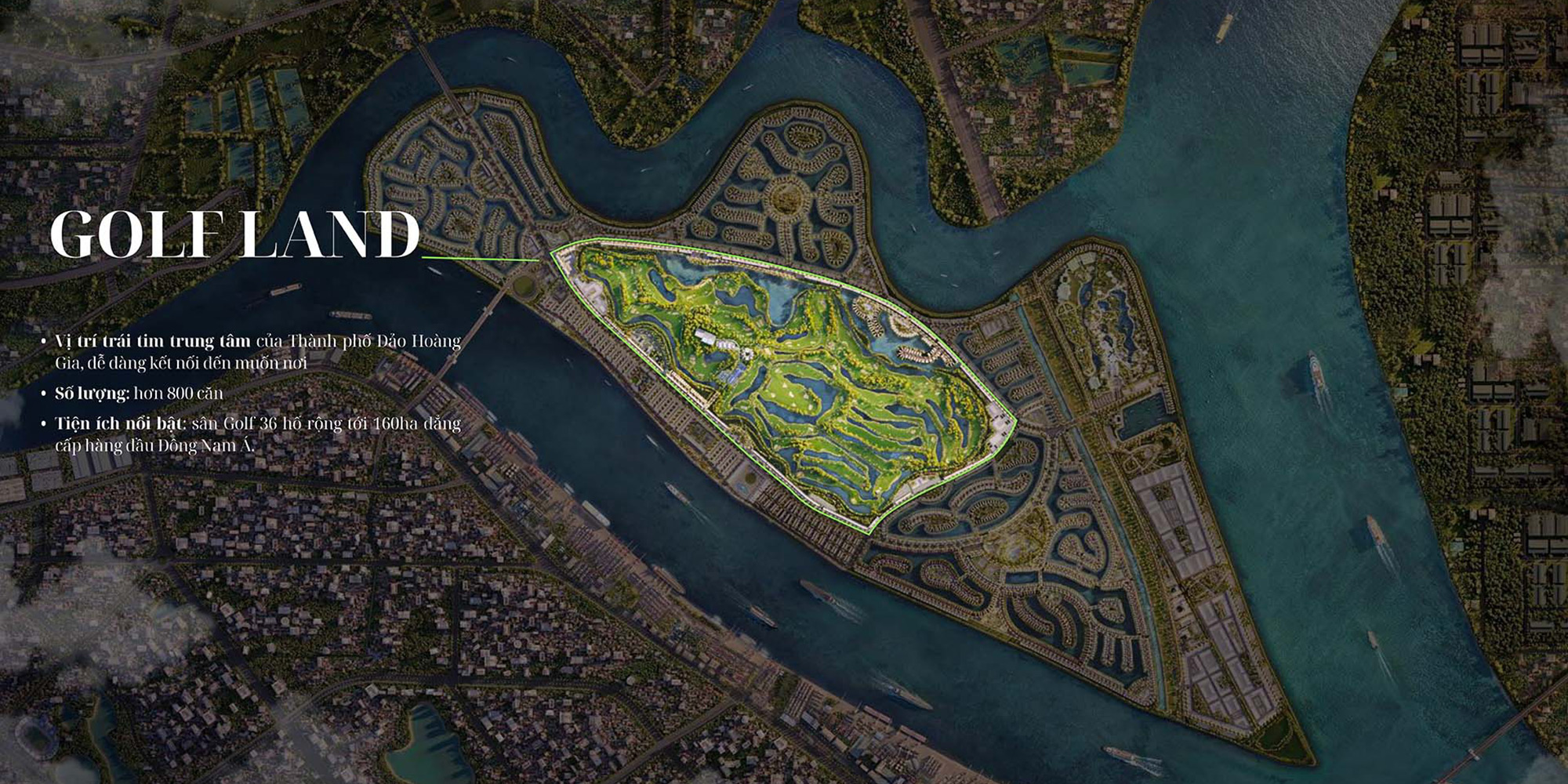 Phân khu Golf Land là phân khu đóng nằm ôm trọn sân golf 160 ha, trung tâm thành phố đảo Vinhomes Vũ Yên Hải Phòng. Đây là phân khu có quy mô “khủng” nhất tại Vinhomes Royal Island Vũ Yên, được phát triển với hơn 800 căn biệt thự thượng hạng & shophouse tầm nhìn hướng về sân golf rộng lớn, hứa hẹn sẽ là nơi hoàn hảo để thụ hưởng cuộc sống thượng lưu đẳng cấp cũng như là nơi hiện thực hóa mọi ý tưởng kinh doanh mới lạ của chủ sở hữu.
