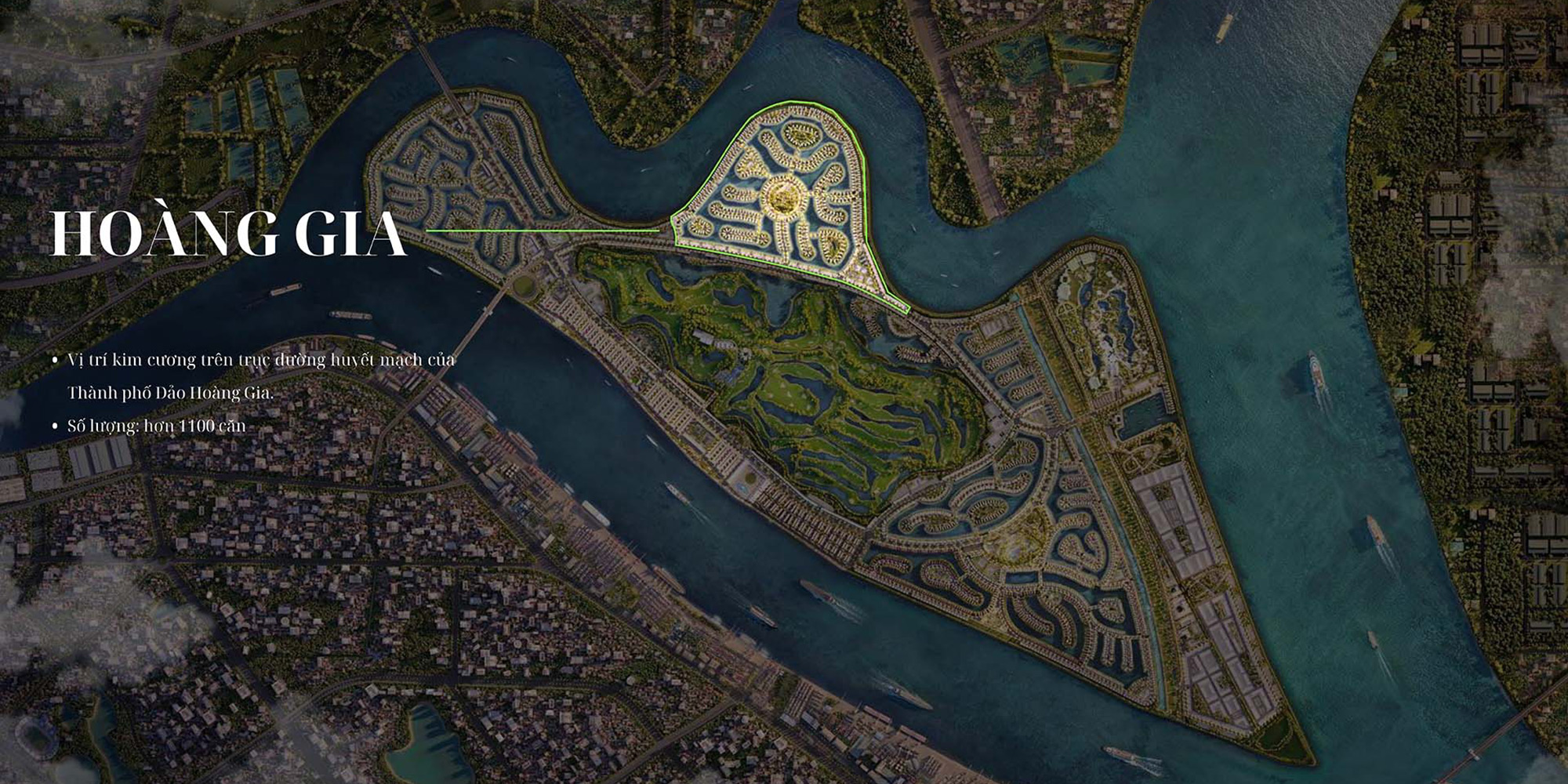 Phân khu Hoàng Gia nằm ôm trọn con sông Ruột Lợn, hướng về cảng Mắt Cá Rồng, Thủy Nguyên, Hải Phòng. Đây là một trong những vị trí đẹp nhất tại thành phố đảo Vũ Yên, 2 mặt tiếp giáp sông xanh uốn lượn, mang đến không gian trong lành, khoáng đạt cũng như dòng chảy tài lộc tới mỗi gia chủ, 1 mặt tiếp giáp đường lớn đô thị (đường Tương Lai), đảm bảo kết nối giao thông nội – ngoại khu của cư dân luôn được thông suốt.