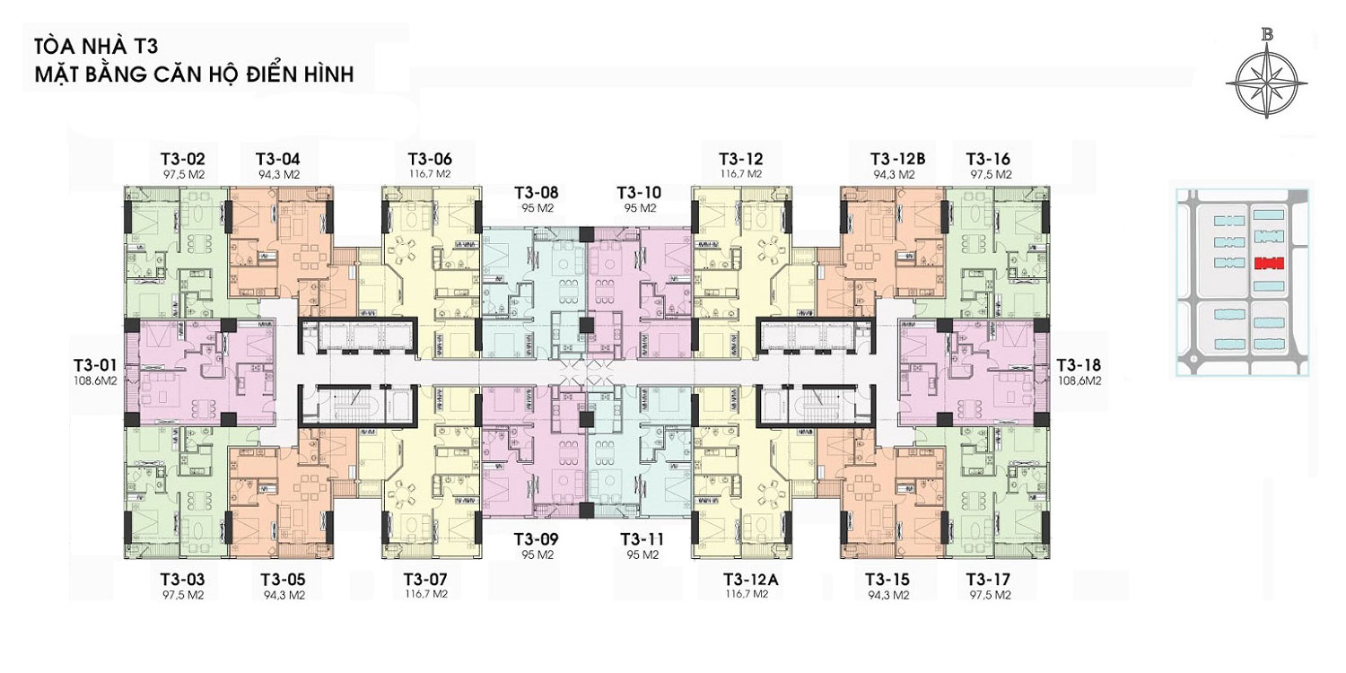 Tòa T3 nằm trên tuyến đường nội bộ số 4, bên trong giai đoạn 1 khu đô thị Times City. Tòa tháp nổi bật với các căn hộ 2 phòng ngủ nằm tại vị trí góc, phòng khách & các phòng ngủ rất thoáng, có thể bao quát toàn cảnh quảng trường trung tâm Times City.