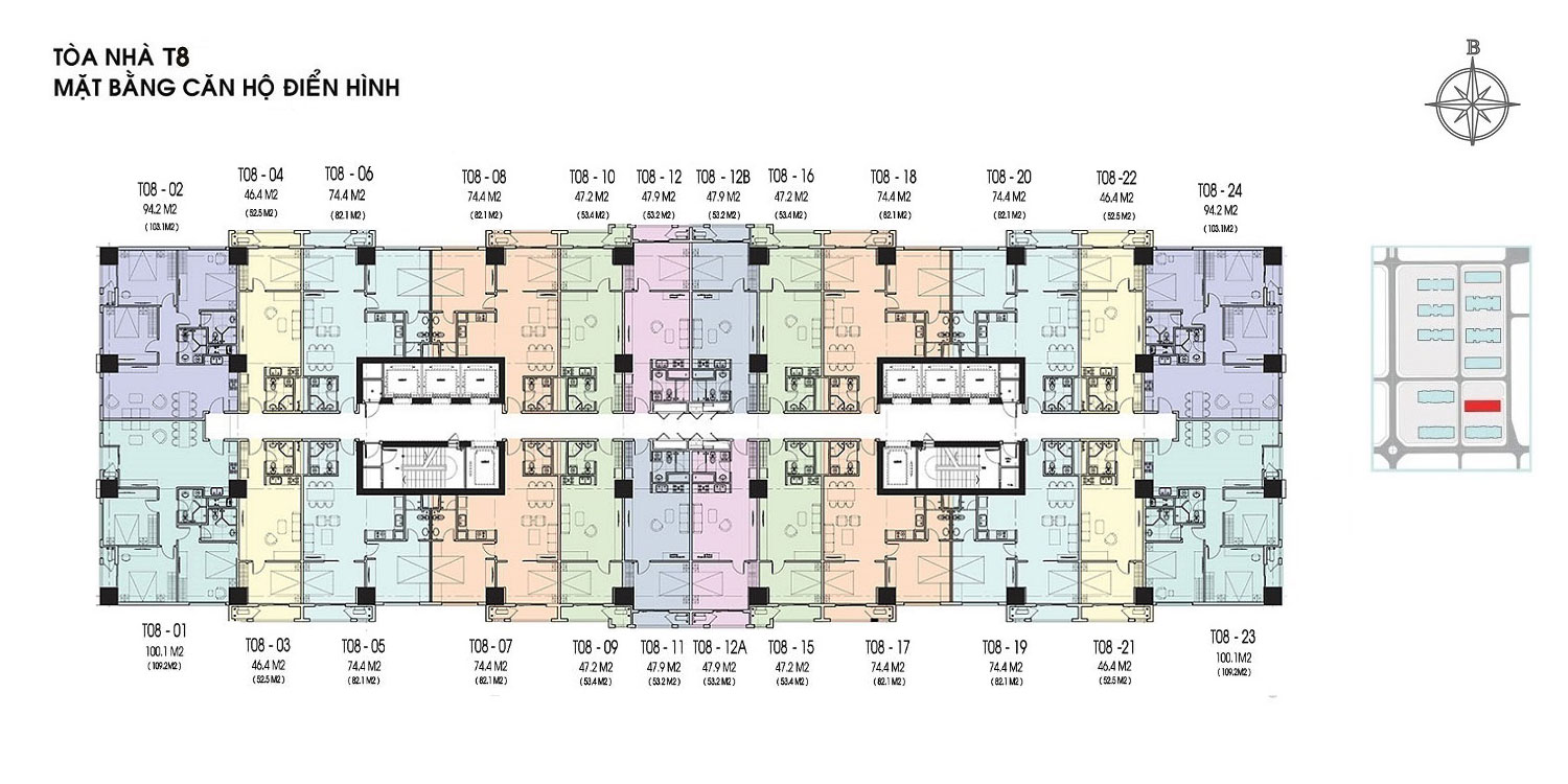 Tòa T8 nằm trên tuyến đường nội bộ số 4, bên trong giai đoạn 1 khu đô thị Times City Hà Nội. Bao quanh tòa tháp là những khu vườn cây xanh rộng lớn, phù hợp với những khách hàng yêu thích sự riêng tư, yên tĩnh. Ngoài ra, T8 còn là một trong số ít các tòa tháp sở hữu căn hộ 1 phòng ngủ, rất lý tưởng với khách hàng mua cho thuê.