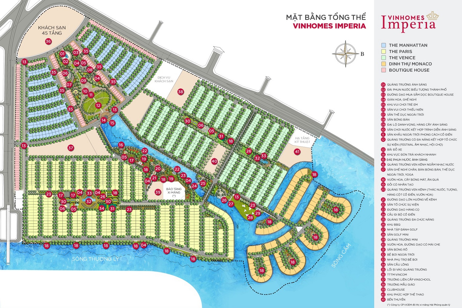 Vinhomes Imperia là khu phức hợp biệt thự liền kề, nhà phố thương mại và khách sạn 5 sao tại thành phố Hải Phòng, do tập đoàn Vingroup làm chủ đầu tư. Sở hữu vị trí vàng, giáp với 2 mặt sông Cấm, sông Tam Bạc, cùng kiến trúc độc đáo, hội tụ tinh hoa của 4 nền văn hóa Pháp, Mỹ, Italia, Monaco, khu đô thị Vinhomes Imperia hứa hẹn sẽ mang đến những giá trị sống tuyệt vời nhất cho người dân chốn Đất Cảng.